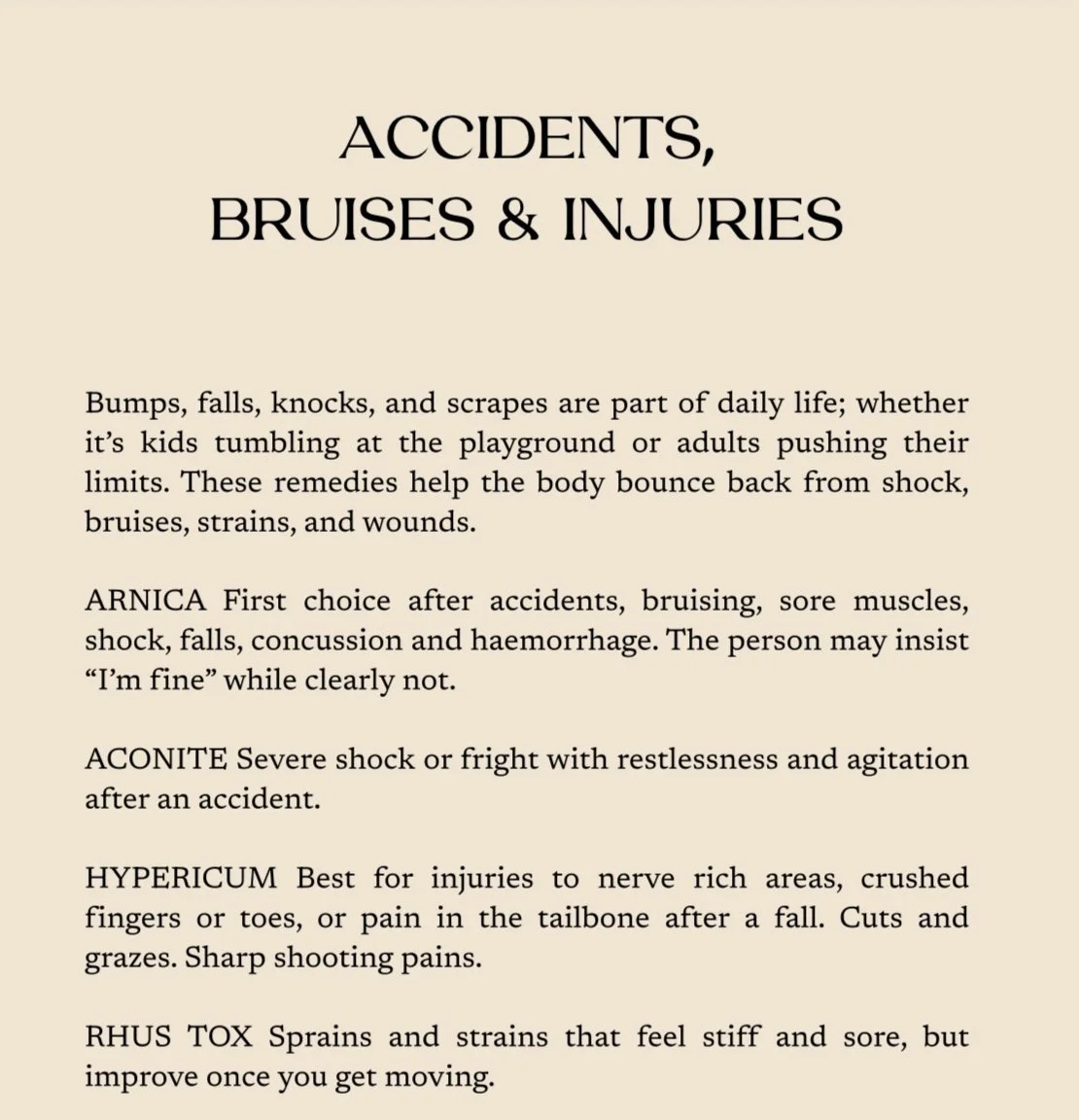 First Aid Guide – A quick reference to match everyday ailments to remedies in your kit, helping you confidently care for your family.